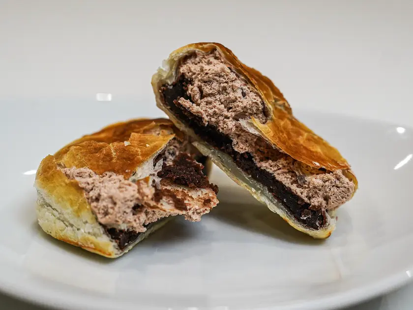 外のパイ生地はサクサク、中に入っているチョコクリームとチョコあんは上品な甘さ。やはり千秋庵は和菓子が美味しいことでも有名なので、そこの甘さのバランスが絶妙!