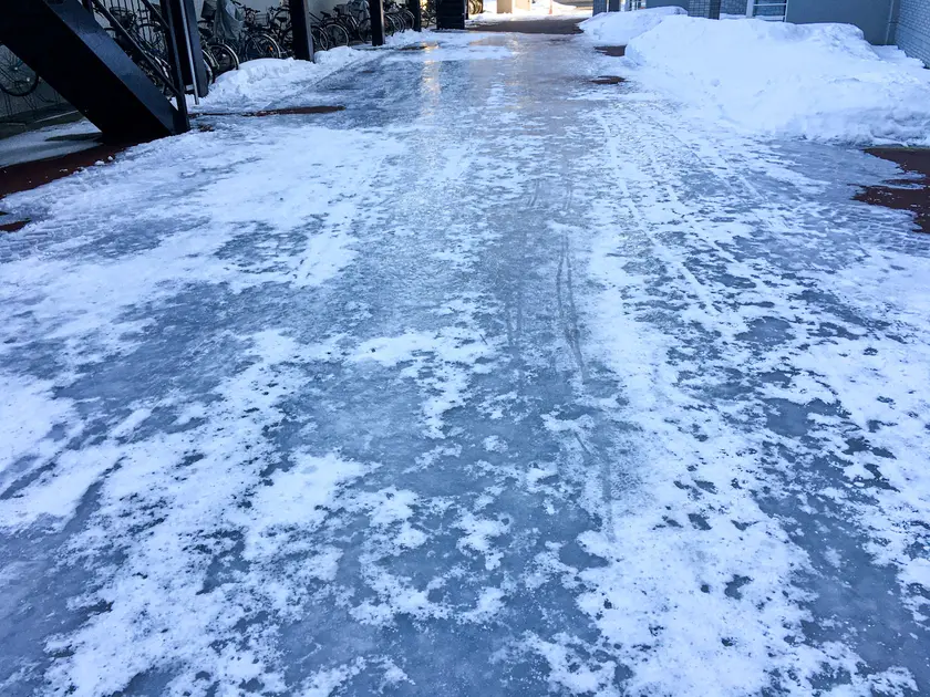 例えば、気温が高かった(0℃以上の)翌日に気温が下がった場合は溶けた雪が凍結するので、雪道の歩き方を知らない道外の人はまともに歩くこともできないでしょう。ヨチヨチ歩きしている大人の人を見かけると、道外からの観光客なんだなとすぐに分かります(笑)